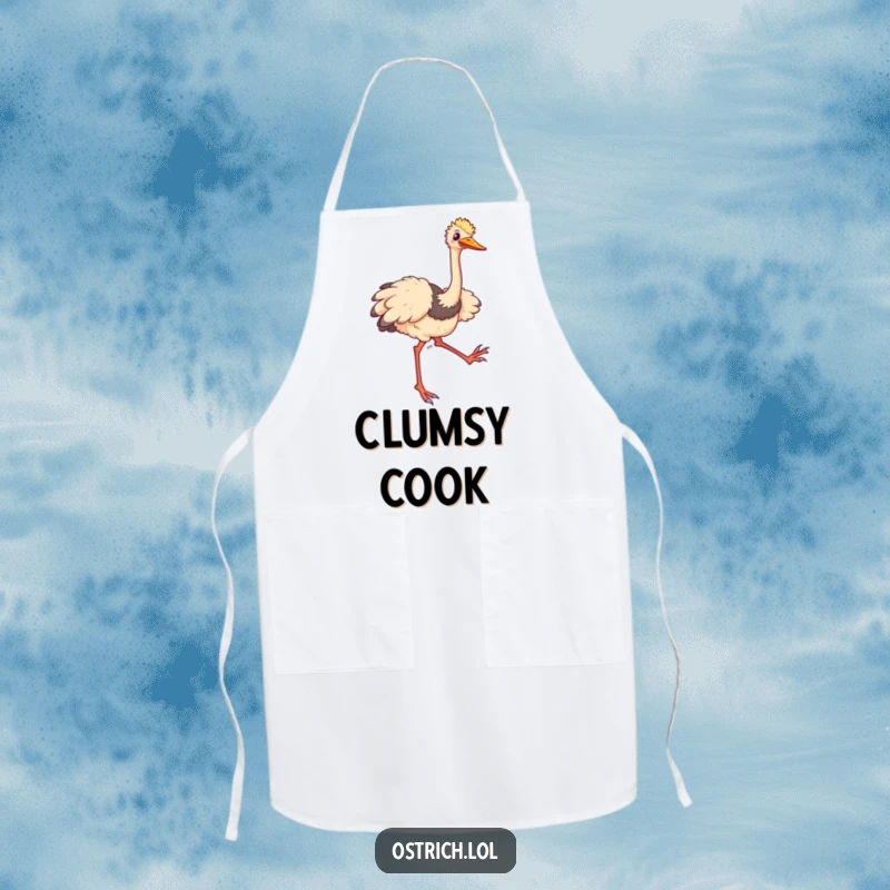 Add a playful touch to your kitchen adventures with this funny ostrich apron. A comical ostrich tripping is sure to amuse your guests.